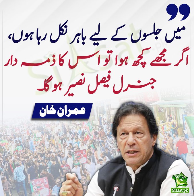 HomeLatest Newsسابق وزیر اعظم عمران خان کے مطابق انہیں کچھ ہوا تو زمہ... National سابق وزیر اعظم عمران خان کے مطابق انہیں کچھ ہوا تو زمہ میجر جنرل فیصل نصیر کا ہو گا۔ By ubaidkt May 6, 2023 0 578 Share FacebookTwitterPinterestWhatsApp سابق وزیر اعظم عمران خان کے مطابق انہیں کچھ ہوا تو زمہ میجر جنرل فیصل نصیر کا ہو گا۔ عمران ریاض خان ٹویٹ Share FacebookTwitterPinterestWhatsApp Previous articleچیف جسٹس اور سپریم کورٹ کے حق مین پی ٹی آئی بڑی ریلیNext articleعدلیہ کا ساتھ نبھانا ہے۔۔۔ اب ملک آزاد کرانا ہے ubaidkthttps://247paknews.com RELATED ARTICLES National پاک سوزوکی نے موٹرز نے پاکستان میں پلانٹ بند کرنے کا اعلان کردیا۔ June 19, 2023 National پی ٹی آئی کے ساتھ جوکچھ ہو رہا ہے وہی اب جماعت اسلامی کے ساتھ ہونے لگا ہے۔ June 15, 2023 National مہاتر محمد کا عمران کےنام پیغام اور نیک طمناو کا اظہار۔ June 15, 2023 LEAVE A REPLY Cancel reply Comment: Please enter your comment! Name:* Please enter your name here Email:* You have entered an incorrect email address! Please enter your email address here Website: Save my name, email, and website in this browser for the next time I comment. - Advertisment - Most Popular پاک سوزوکی نے موٹرز نے پاکستان میں پلانٹ بند کرنے کا اعلان کردیا۔ June 19, 2023 پی ٹی آئی کے ساتھ جوکچھ ہو رہا ہے وہی اب جماعت اسلامی کے ساتھ ہونے لگا ہے۔ June 15, 2023 مہاتر محمد کا عمران کےنام پیغام اور نیک طمناو کا اظہار۔ June 15, 2023 بیرونی ملک پاکستانی بےشرم لوگ ہے یہ صرف لاشے دفنانے پاکستان اتے ہے۔ خواجہ آصف June 15, 2023 Load more Recent Comments